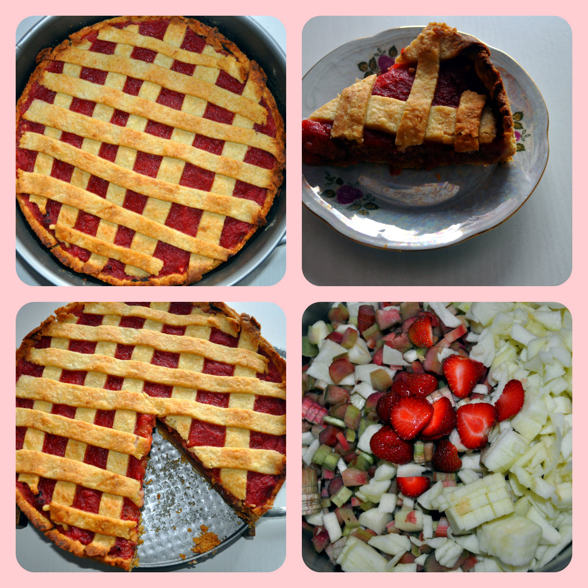 Wykładamy tortownice ciastem (zostawiamy trochę na dekoracyjną kratkę na wierzch ciasta), wkładamy ciasto do piekarnika na 20 minut na 180 stopni. Wyjmujemy, wlewamy mus do ciasta, układamy kratkę z pasków ciasta i wstawiamy ponownie do 180stopni na 30 – 35 minut.